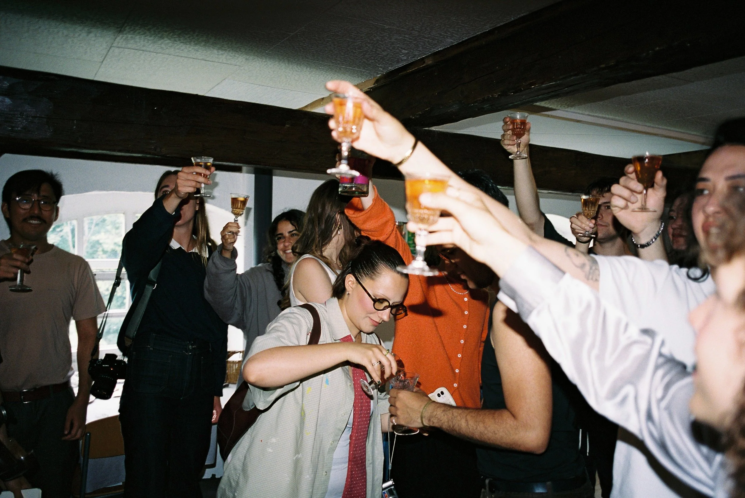 opening night gallery, artist talks + workshops, 2 curated dinner parties, a collaborative studio environment, art materials & music recording equipment, coffee, and more